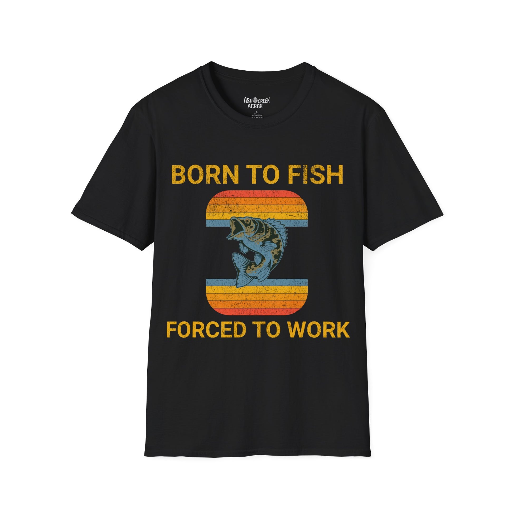 Born to Fish Forced to Work T-Shirt — Retro Fishing Tee for Anglers