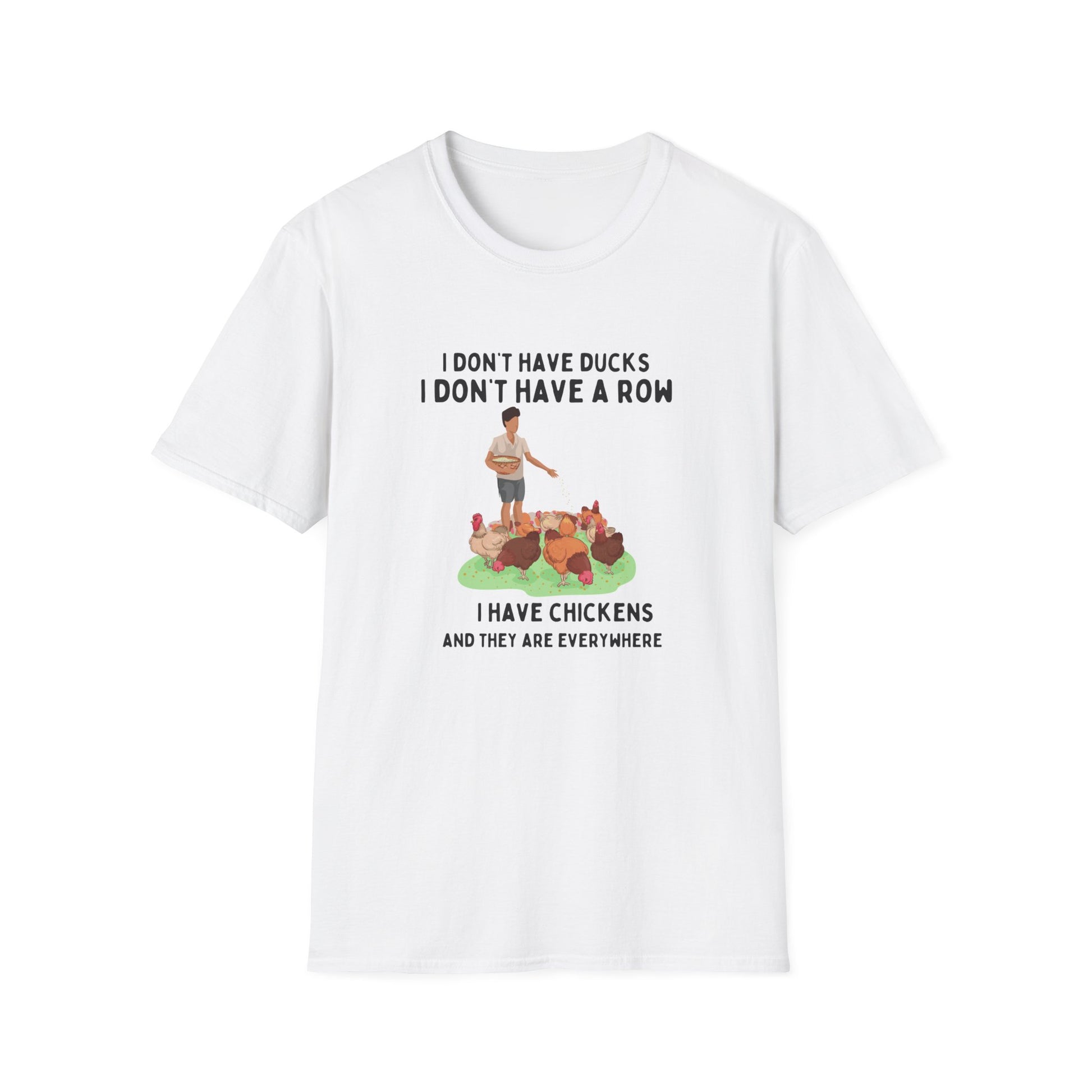 A soft and comfortable unisex T-Shirt featuring a graphic of a lady surrounded by chickens and the text 'Chickens Everywhere'. This T-Shirt exudes a relaxed and casual vibe, perfect for everyday wear. Ideal for chicken lovers, farmers, and anyone who appreciates whimsical designs. Perfect for casual outings, farm visits, chicken-themed parties, and as a fun gift for birthdays or holidays.